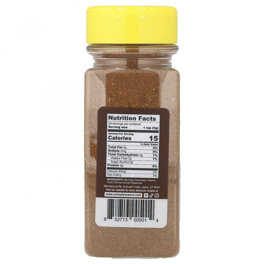Прекрасно сбалансированный вкус китайских специй USimplySeason покоряет все пять вкусов в идеальной мере. В традиционной китайской кухне насыщенный вкус Five Spice обычно используется в качестве растительного масла или маринада для жирного и жирного мяса, такого как свинина, утка и говядина, которые затем обычно тушат, жарят на гриле или жарят с перемешиванием до фиксации. с сильным вкусом Five Spice. Мы также любим использовать его в выпечке!