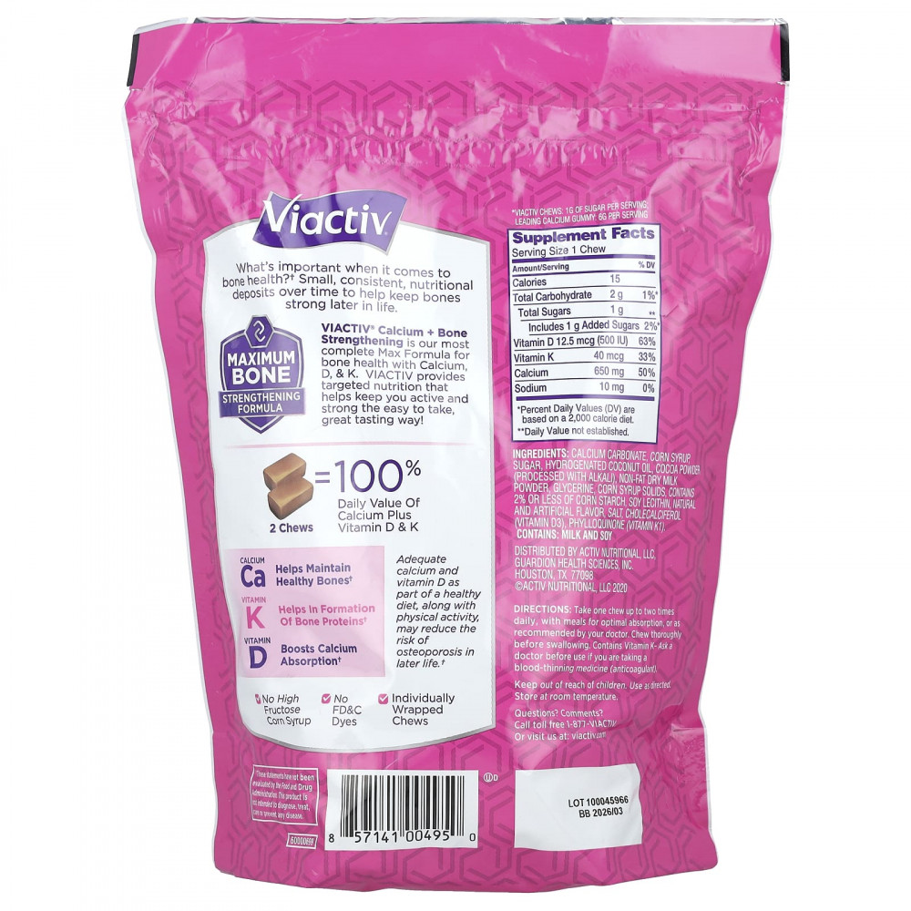 VIACTIV® для укрепления костей с кальцием и кальцием - это наша самая полная формула Max для здоровья костей, содержащая кальций, витамины D и К. VIACTIV обеспечивает целенаправленное питание, которое помогает поддерживать вашу активность и силу. Легко принимать и имеет отличный вкус!