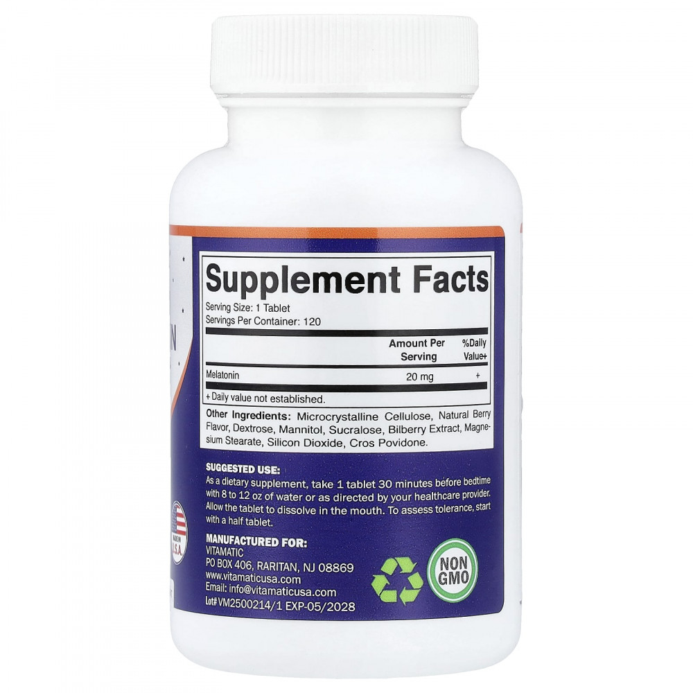 Мелатонин (20 мг) - эффективная доза Каждая из наших таблеток мелатонина содержит 20 мг мелатонина максимальной силы действия, что является оптимальной и эффективной дозировкой.