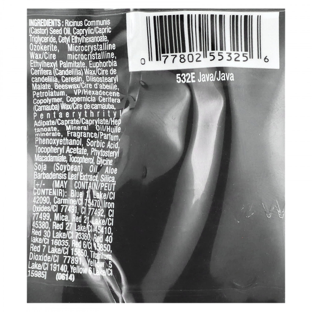 Касторовое масло (Ricinus communis), каприловый/каприновый триглицерид, цетилэтилгексаноат, озокерит, микрокристаллический воск, этилгексил пальмитат, канделильский воск (Euphorbia cerifera), церезин, диизостеарил малат, пчелиный воск, вазелин, ВП/гексадецен сополимер, карнаубский воск (Copernicia cerifera), пентаэритритил адипат/капрат/каприлат/гептаноат, минерального масла, отдушка, феноксиэтанол, сорбиновая кислота, токоферилацетат, фитостерил макадамиат, токоферол, соевое масло (Glycine soja), экстракт листьев алоэ вера (Aloe barbadensis), диоксид кремния, [может содержать краситель синий 1 лак (CI 42090), кармин (CI 75470), оксиды железа (CI 77491, CI 77492, 77499, слюда, краситель красный 21 лак (CI 45380), краситель красный 27 лак (CI 45410), краситель красный 30 лак (CI 73360), краситель красный 40 лак (CI 16035), краситель красный 6 (CI 15850), краситель красный 7 лак (CI 15850), диоксид титана (CI 77891), краситель желтый 5 лак (CI 19140), краситель желтый 6 лак (CI 15985)].
