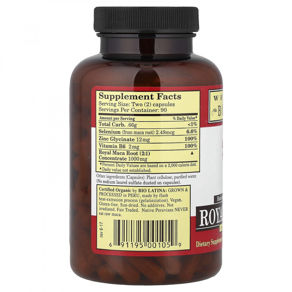 Сертифицированная органическая компания Bio Latina, Лима Перу. Не содержит глютен. Нет добавок. Не облученный, Royal Maca торгуется. Порошкообразный концентрат Royal Maca готовят с помощью собственного термоэкструдированного процесса.
