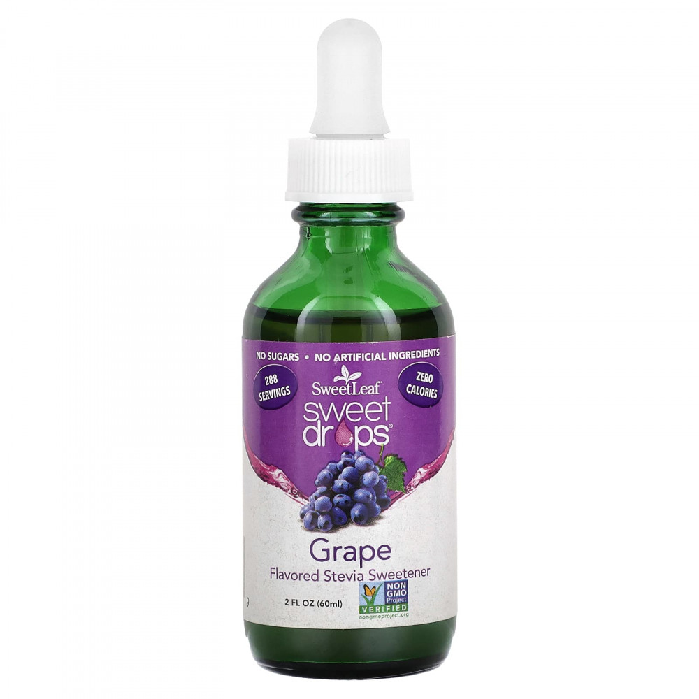 Подсластитель SweetLeaf® от Sweet Drops™ со вкусом винограда — это здоровый выбор для каждого. Великолепно подходит к любому блюду: от напитков до десертов, от закусок до первых блюд и ко многому другому. Без калорий и углеводов. Нулевой гликемический индекс!