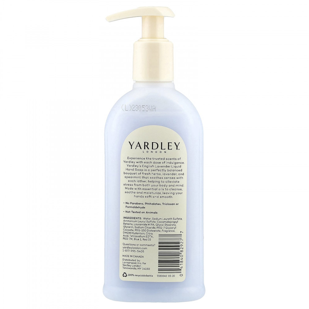 Испытайте проверенные ароматы Yardley с каждой дозой наслаждения. Жидкое мыло для рук с лавандой от Yardley - это идеально сбалансированный букет из свежих трав, лаванды и мяты, который успокаивает чувства с каждой пеной, помогая снять стресс как для тела, так и для разума. Содержит эфирные масла, которые очищают, успокаивают и увлажняют, делая ваши руки мягкими и гладкими.