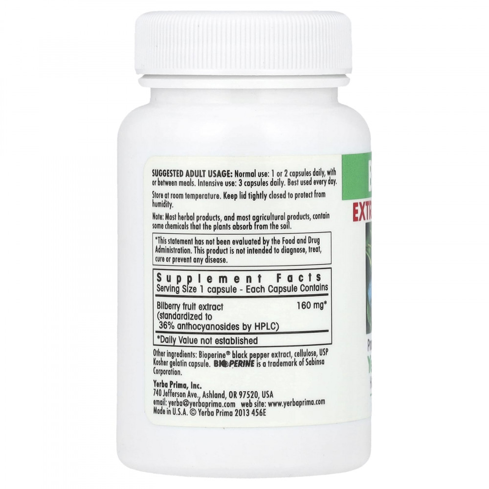 Черника с повышенной силой действия от Yerba Prima для получения максимальной пользы.