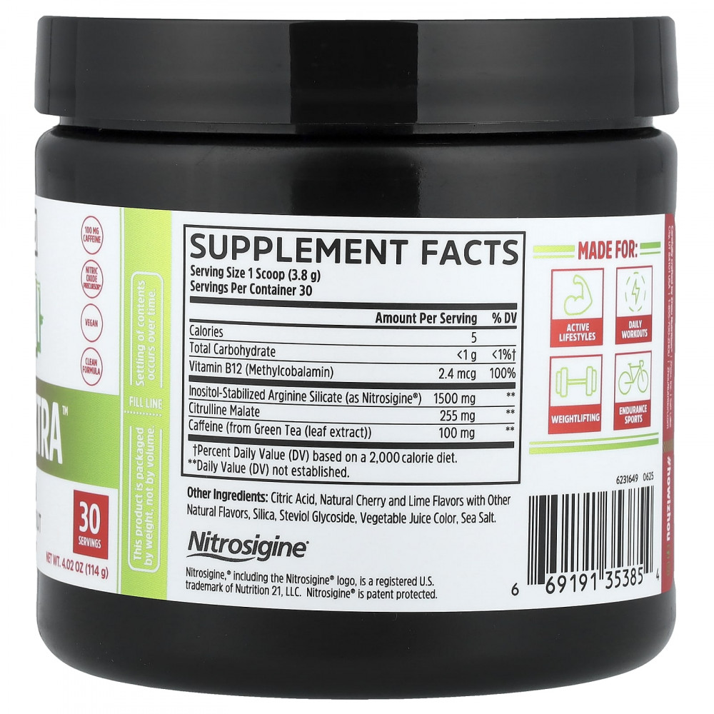 Повысьте эффективность тренировки с помощью прекурсора оксида азота . . . 100 мг кофеина.