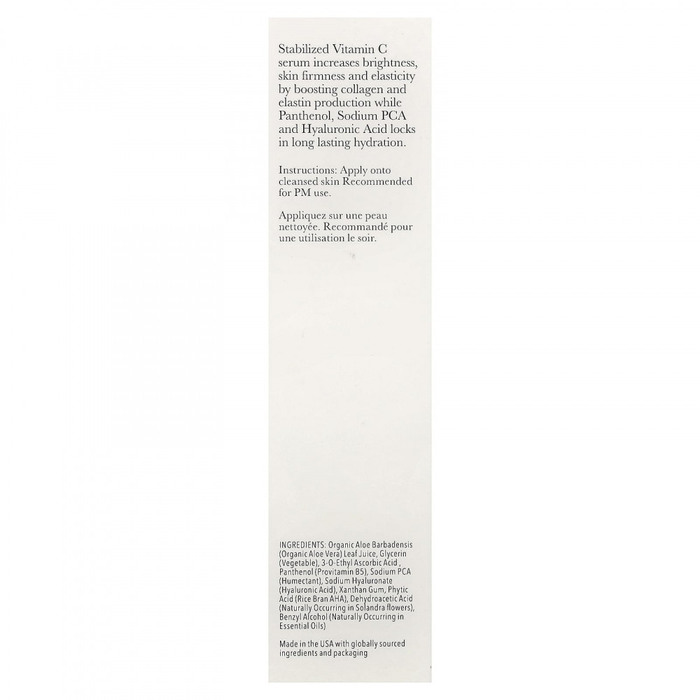 Сыворотка со стабилизированным витамином C улучшает сияние, упругость и эластичность кожи за счёт стимулирования выработки коллагена и эластина, а пантенол, натрий PCA и гиалуроновая кислота удерживают длительное увлажнение.
