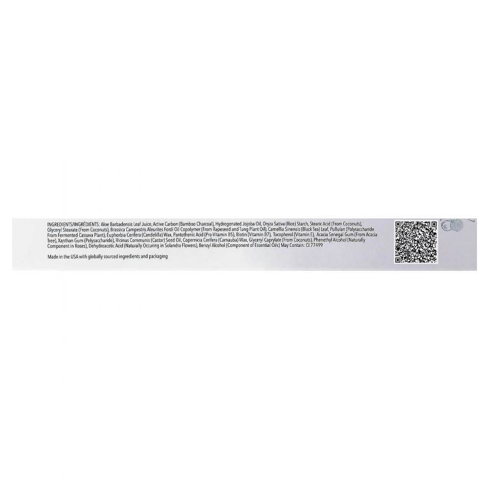 сок листьев алоэ вера (Aloe barbadensis), активный уголь (бамбуковый уголь), гидрогенизированное масло жожоба, рисовый крахмал (Oryza sativa), стеариновая кислота (из кокосов), глицерил стеарат (из кокосов), сополимер масла рапса и тунга (Brassica campestris aleuritus fordi), листья черного чая (Camellia sinensis), пуллулан (полисахарид из ферментированного растения маниока), Воск молочая (Candelilla), пантотеновая кислота (провитамин B5), биотин (витамин B7), токоферол (витамин E), смола сенегальской акации (Acacia senegal), ксантановая камедь (полисахарид), Масло семян Ricinus communis (касторового), Воск Copernicia cerifera (Carnauba), глицерил каприлат (из кокосов), фенетиловый спирт (натуральный компонент из розы), дегидроуксусная кислота (в природе содержится в цветках соландры), бензиловый спирт (компонент эфирных масел) может содержать: CI 77499.