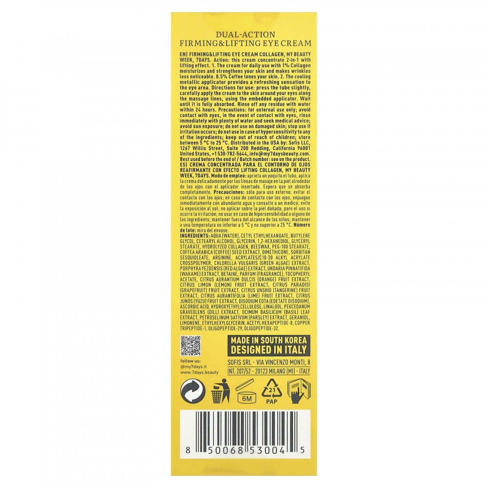 Вода, цетилэтилгексаноат, бутиленгликоль, цетеариловый спирт, глицерин, 1,2-гександиол, глицерил стеарат, гидролизованный коллаген, пчелиный воск, ПЭГ-100 стеарат, экстракт зерен кофе арабики (Coffea arabica), диметикон, сорбитана сесквиолеат, аргинин, акрилат/c10-30 алкил акрилат кроссполимер, экстракт зеленых водорослей (Chlorella vulgaris), экстракт красных водорослей (Porphyra yezoensis), экстракт ундарии перистой (Undaria pinnatifida), бетаин, парфюмерная композиция (отдушка), токоферилацетат, экстракт плодов апельсина (Citrus aurantium dulcis), экстракт плодов лимона (Citrus limon), экстракт плодов грейпфрута (Citrus paradisi), экстракт плодов мандарина (Citrus unshiu), экстракт плодов лайма (Citrus aurantifolia), экстракт плодов юдзу (Citrus junos), двунатриевая ЭДТК (ЭДТК двунатриевая), аскорбиновая кислота, гидроксиэтилцеллюлоза, линалоол, экстракт укропа (Peucedanum graveolens), экстракт листьев базилика (Ocimum basilicum), экстракт петрушки (Petroselinum sativum), гераниола, лимонен, этилгексилглицерин, ацетил гексапептид-8, трипептид меди-1, олигопептид-29, олигопептид-32.