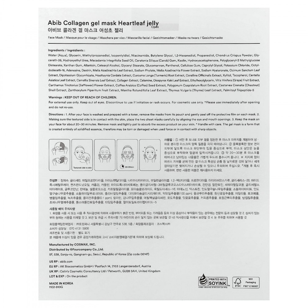 Вода (Aqua), глицерин, метилпропандиол, изопентилдиол, никотинамид, бутиленгликоль, 1,2-гександиол, пропандиол, порошок из ирландского мха (Chondrus crispus), глицерет-26, гидроксиэтилированная мочевина, масло макадамии (Macadamia integrifolia), камедь рожкового дерева (Ceratonia siliqua), каолин, гидроксиацетофенон, полиглицерил-3 метилглюкозы дистеарат, ксантановая камедь, аллантоин, цетеариловый спирт, глицерил стеарат, глюкоманнан, пантенол, целлюлозная камедь, каприлилгликоль, хлорид калия, октилдодецет-16, аденозин, декстрин, экстракт листьев дерева ним (Melia azadirachta), фитат натрия, экстракт цветков дерева ним (Melia azadirachta), гиалуронат натрия, экстракт листьев туласи (Ocimum sanctum), дикалия глицирризат, экстракт хауттюйнии (Houttuynia cordata), экстракт корня куркумы (Curcuma longa), экстракт кораллины лекарственной (Corallina officinalis), ксилитол, токоферол, экстракт листьев готу колы (Centella asiatica), экстракт листьев зелёного чая (Camellia sinensis), экстракт коллагена, каламин, экстракт листьев хурмы восточной (Diospyros kaki), этилгексилглицерин, экстракт плодов винограда (Vitis vinifera), экстракт цветков сафлора (Carthamus tinctorius), экстракт зёрен кофе арабики (Coffea arabica), экстракт корня рейнутрии японской (Polygonum cuspidatum), экстракт скорлупы каштана (castanea crenata), экстракт сычуаньского перца (Zanthoxylum piperitum), экстракт листьев мяты яблочной (Mentha rotundifolia), экстракт листьев чабреца (Thymus vulgaris), пальмитоил трипептид-5.