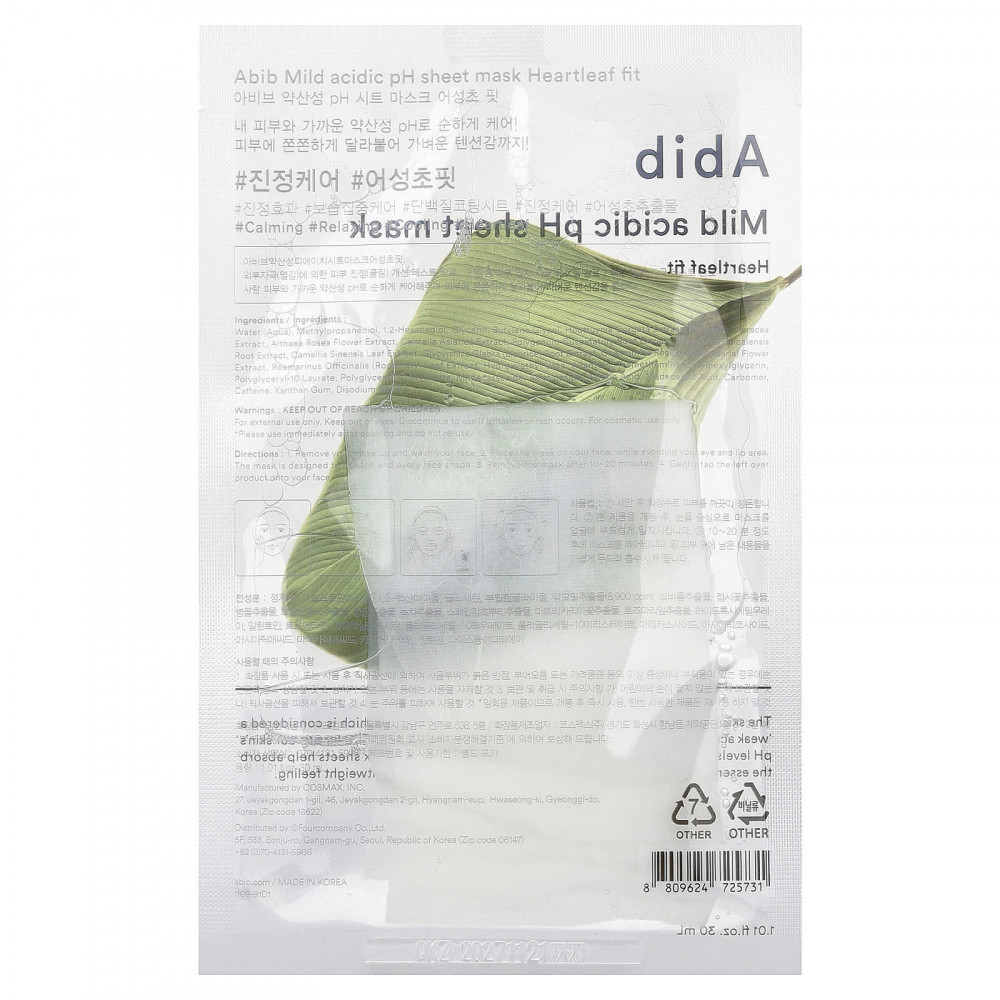 pH кожи здорового человека составляет от 5,0 до 6,0, что считается "слабой кислотой". Тканевая маска с кислотным уровнем pH от Abib's примерно соответствует уровню pH нашей кожи, что мягко заботится о ней. Тканевая маска с альбумином помогает впитать эссенцию в кожу и повторяет контуры лица, обеспечивая ощущение легкости.