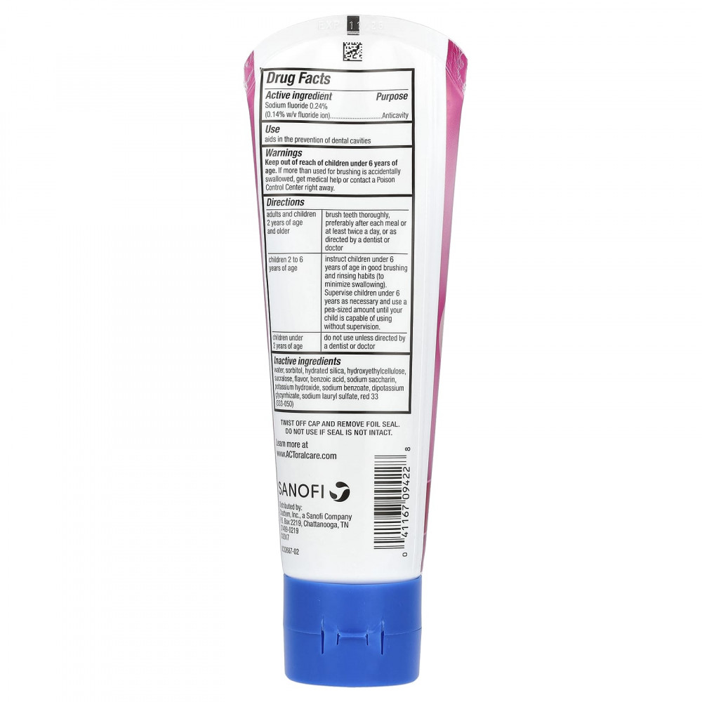 Дети от 2 до 6 лет: обучите детей в возрасте до 6 лет навыкам чистки зубов и полоскания рта (чтобы свести к минимуму количество проглатываемого ополаскивателя). Дети в возрасте до 6 лет могут использовать средство по мере необходимости. Используйте количество размером с горошину, пока ребенок не сможет использовать средство без присмотра.