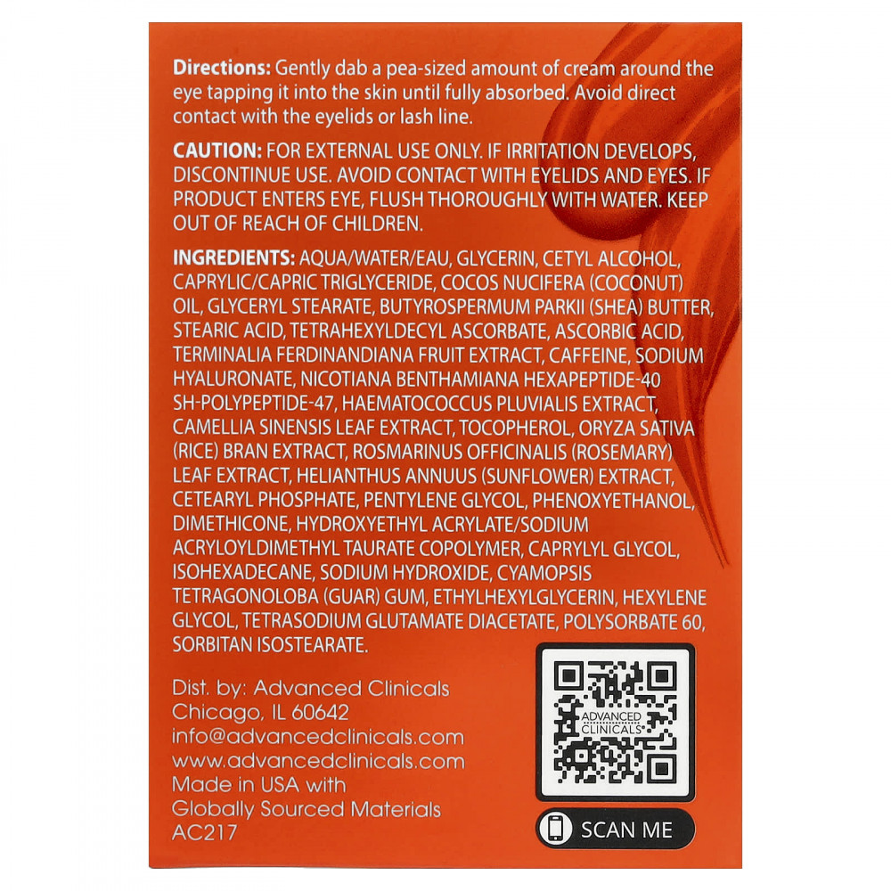 Наш усовершенствованная формула крема для области вокруг глаз обогащена витамином С, кофеином и пептидами, которые заметно осветляют темные круги, уменьшают отечность и визуально разглаживают мелкие морщинки. Придает коже сияние и питание.
