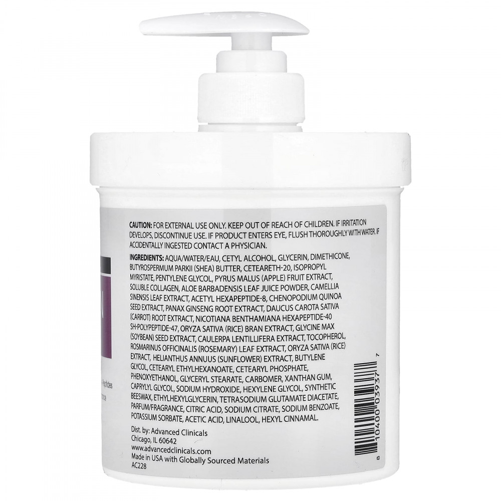 Вода (Aqua/eau), цетиловый спирт, глицерин, диметикон, масло ши (Butyrospermum parkii), цетеарет-20, изопропил миристат, пентилен гликоль, экстракт яблока (Pyrus malus), растворимый коллаген, порошок из сока листьев алоэ вера (Aloe barbadensis), экстракт листьев зелёного чая (Camellia sinensis), ацетил гексапептид-8, экстракт киноа (Chenopodium quinoa), экстракт корня женьшеня (Panax ginseng), экстракт корнеплода моркови (Daucus carota sativa), гексапептид-40 (nicotiana benthamiana), sh-полипептид-47, экстракт рисовых отрубей (Oryza sativa), экстракт семян сои (Glycine max), экстракт морского винограда (Caulerpa lentillifera), токоферол, экстракт листьев розмарина (Rosmarinus officinalis), экстракт риса (Oryza sativa), экстракт подсолнечника (Helianthus annuus), бутиленгликоль, цетеариловый этилгексаноат, цетеарил фосфат, феноксиэтанол, глицерил стеарат, карбомер, ксантановая камедь, каприлилгликоль, гидроксид натрия, гексиленгликоль, синтетический воск, этилгексилглицерин, диацетат глутамата тетранатрия, парфюмерная композиция/отдушка, лимонная кислота, цитрат натрия, бензоат натрия, сорбат калия, уксусная кислота, линалоол, гексил циннамал.