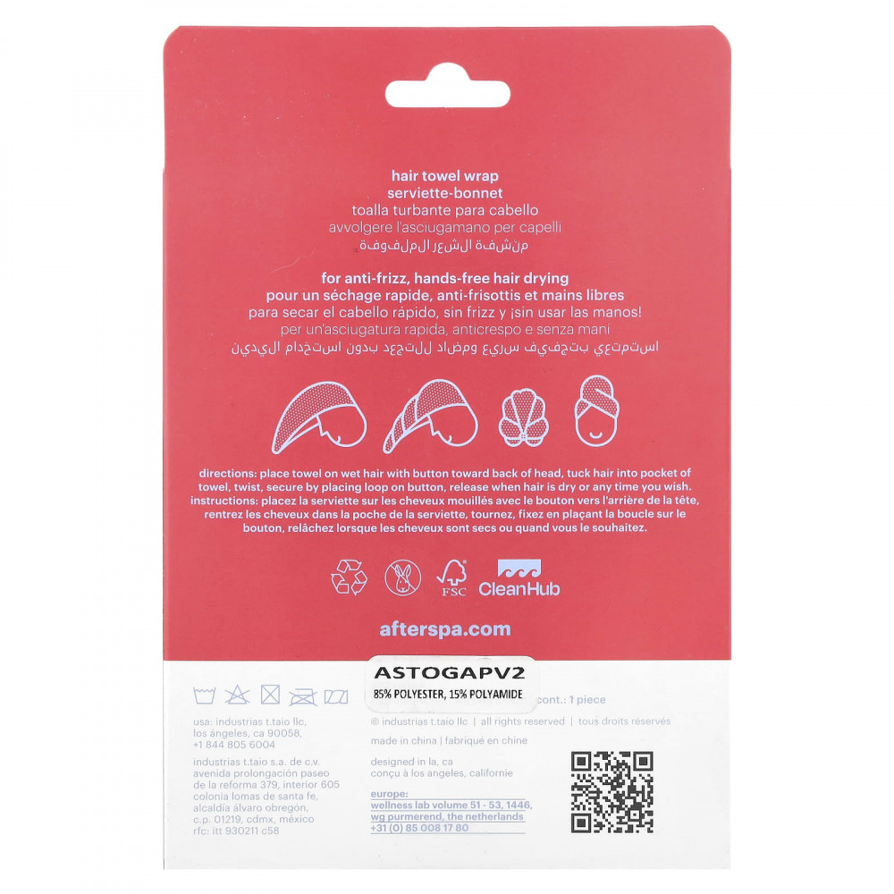 Обертывание полотенцем для волос Afterspa можно использовать для всех типов и длины волос. естественная сушка прямых, волнистых, вьющихся и свернутых волос.