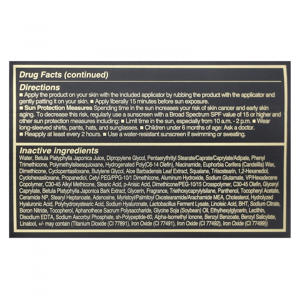 | Вода, сок Betula platyphylla japonica, дипропиленгликоль, пентаэритритил стеарат / капрат / каприлат / адипат, фенилтриметикон, полиметилсилсесквиоксан, гидрогенизированный поли (c6-14 олефин), ниацинамид, эуфорбия церифераан (канделиленгликоль), воск, диптиленгликоль (Euphorbia cerifera) barbadensis, сквалан, триизостеарин, 1,2-гександиол, циклогексасилоксан, пропандиол, цетил ПЭГ / ППГ-10/1 диметикон, гидроксид алюминия, глутамат натрия, сополимер ВП / гексадецена, С30-45 алкилметикон, стеариновая кислота, п- анисовая кислота, диметикон / ПЭГ-10/15 кроссполимер, c30-45 олефин, глицерил каприлат, экстракт коры бетулы платифиллы японской, глицерин, отдушка, триэтоксикаприлилсилан, пантенол, токоферилацетат, церамид нп, стеарил оксиденозатин, стеарилгептаноат арахамидное вещество, холестерин, гидролизованная гиалуроновая кислота, полигидроксистеариновая кислота, гиалуронат натрия, ферментный лизат лактобактерий, линолевая кислота, бета-гидрокситамин, цитрат натрия, нитрид бора, toc оферол, полисахарид Aphanothece sacrum, соевое масло (глицин соя), этилгексилглицерин, лецитин, динатрий ЭДТА, аскорбилфосфат натрия, sh-полипептид-60, альфа-изометиллонон, бензилбензоат, бензил салицилат, линалоол (титан +/- может содержать диоксид (CI 77891), оксид железа (CI 77491), оксид железа (CI 77492), оксид железа (CI 77499). | |