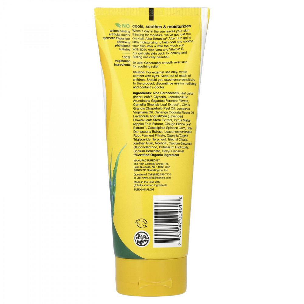 Если после дня, проведенного на солнце, ваша кожа жаждет влаги, у нас есть коктейли. Гель после загара Alba Botanica® — это ультраувлажняющий гель, который охлаждает и успокаивает кожу после загара. Наш гель, содержащий 80% алоэ вера и витамин Е, возвращает коже здоровый вид и красоту.