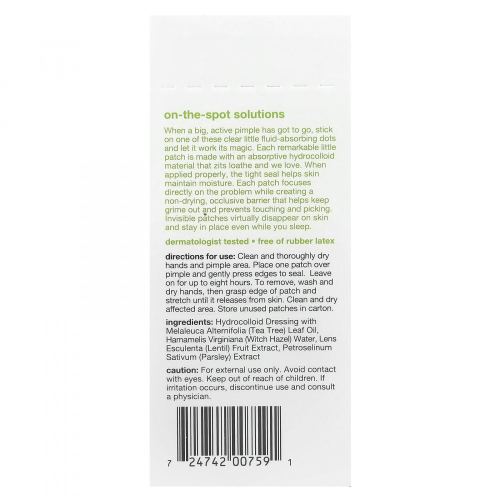 Когда большой активный прыщ должен исчезнуть, нанесите одну из этих маленьких прозрачных впитывающих жидкость точечных таблеток и позвольте им творить свое волшебство. Каждый замечательный небольшой патч изготовлен из впитывающего гидроколлоидного материала, который ненавидят прыщи, а мы любим. При правильном нанесении плотно прилегает к коже, помогая удерживать влагу. Каждое патч предназначено непосредственно для решения проблемы, создавая невысыхающий защитный барьер, который помогает предотвратить попадание грязи, а также предотвращает прикосновение и отшелушивание. Незаметные участки кожи практически исчезают с кожи и не исчезают даже во время сна.