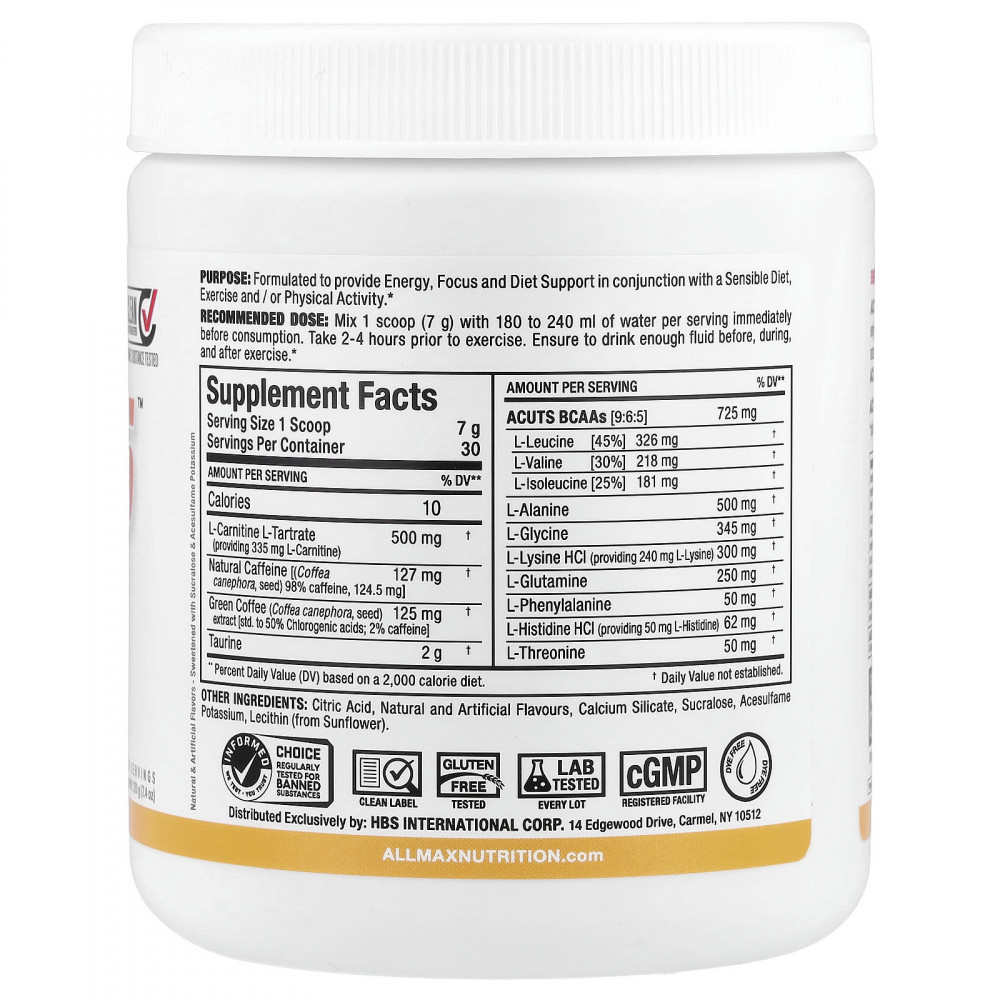 ACUTS может стать самой вкусной смесью для приготовления напитков, которую мы когда-либо готовили. Идеально подходит для употребления в любое время; добавка ACUTS легко смешивается, содержит аминокислоты и такие ингредиенты, как натуральные кофеин, таурин, L-карнитин и экстракт зеленого кофе. ACUTS идеально подходит в любое время, когда вам нужен заряд энергии!