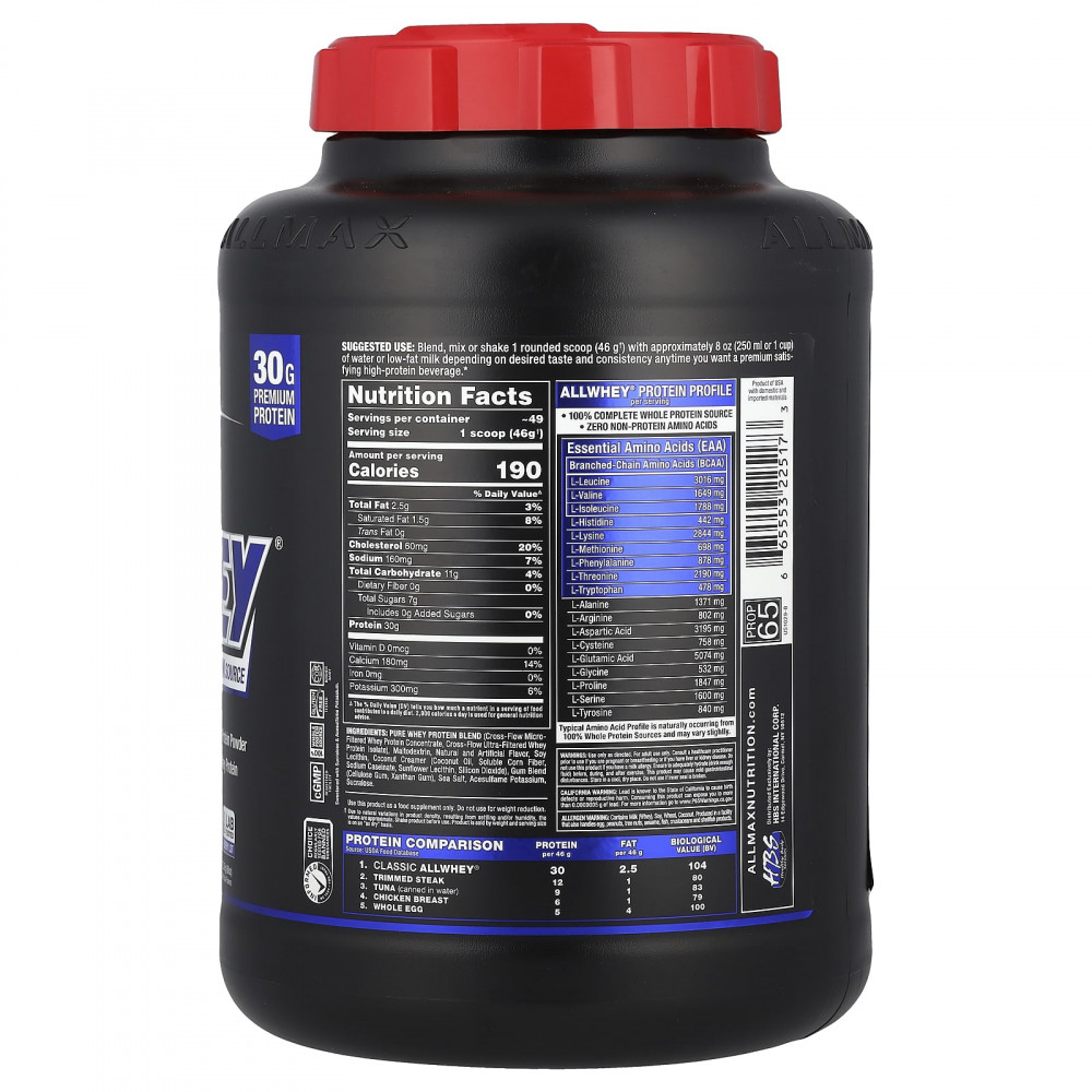 CLASSIC ALLWHEY® - это концентрат сывороточного протеина премиального качества, смешанный с изолятом сывороточного протеина, содержащий 30 г протеина в 46 г порции; проверено и гарантировано! ALLWHEY содержит чистый, полноценный и цельный белок из лучших источников — 100% сывороточный протеин! Попробуйте чистый сывороточный протеин с отличным вкусом и удивительной ценностью. Попробуйте исключительный протеин с превосходным вкусом. ТРЕБУЙ КЛАССИКИ ВСЕМ!