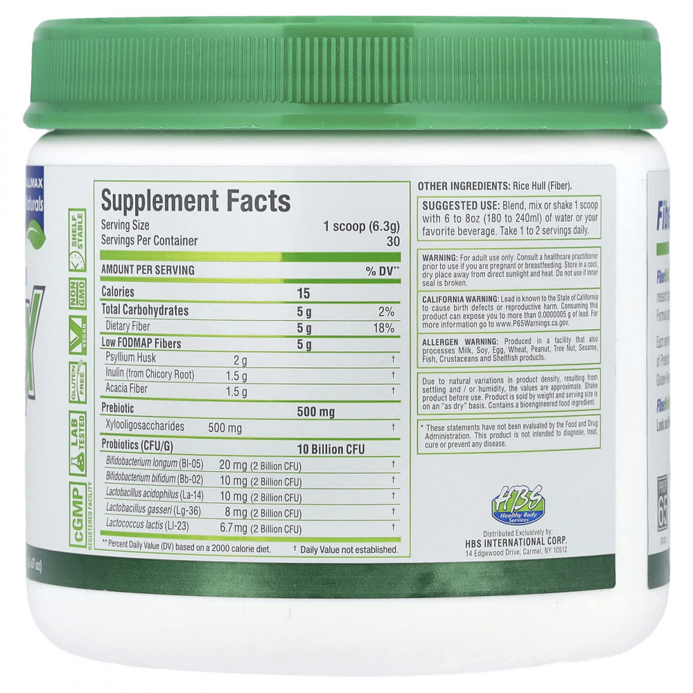 Каждая порция снабжает ваш организм 10 миллиардами КОЕ пробиотиков, 500 мг пребиотиков и 5 г клетчатки с низким содержанием FODMAP. FiberBiotiX не содержит наполнителей, глютена и ГМО, искусственных ароматизаторов, красителей и красителей.