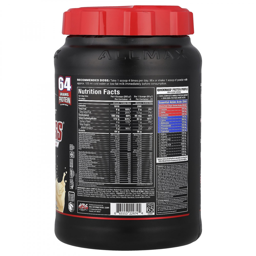 Чистота и эффективность каждого ингредиента и каждой партии протестированы в лаборатории, чтобы гарантировать стабильное качество продукции. Quickmass® проходит эксклюзивный 5-этапный протокол проверки качества Allmax.