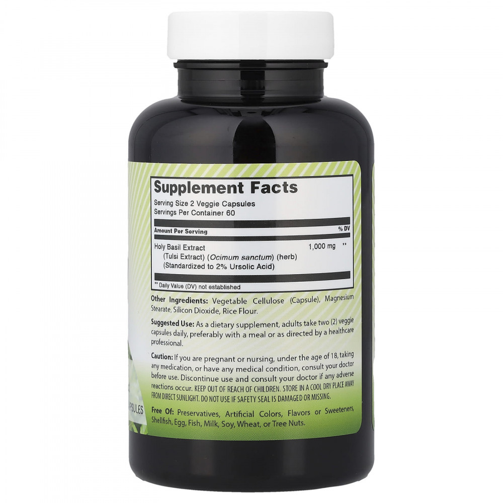 | Экстракт травы базилика священного (экстракт туласи) (Ocimum sanctum) (стандартизированный до 2% урсоловой кислоты) | 1000 мг | ** |