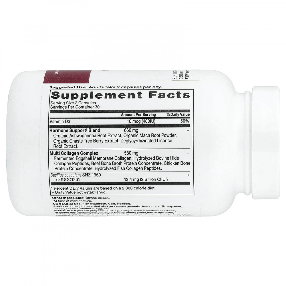 Гормональный баланс с коллагеном воздействует на ключевые области гормонального здоровья. Он помогает сбалансировать уровень эстрогена, регулировать уровень кортизола (гормона стресса) и поддерживать женское сексуальное здоровье.