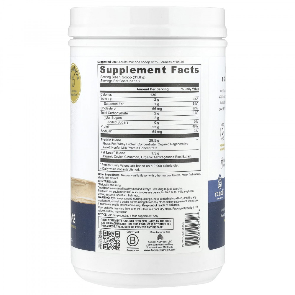 Получите 23 г сывороточного протеина травяного откорма и восстанавливающий концентрат обезжиренного молочного протеина A2 / A2, а также клинически изученную смесь ашваганды и корицы, чтобы помочь вам в достижении ваших целей. Меньше аппетита, сжигание жира * и заряд энергии.