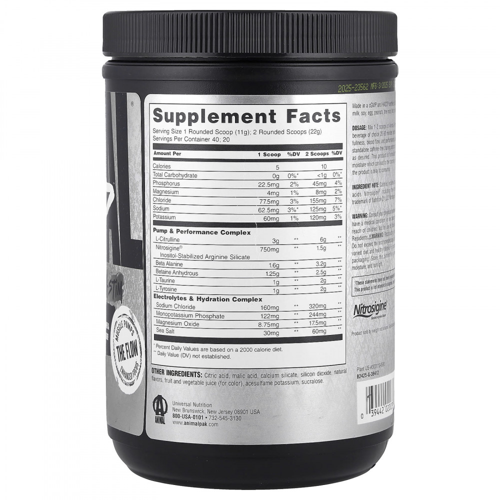 Смешайте 1–2 мерные ложки Animal Pump NS™ с 10–12 унциями напитка по вашему выбору за 20–30 минут до тренировки. Для максимальной наполнения мышц, улучшения кровотока и производительности принимайте 2 мерные ложки. Используйте как отдельный продукт для тренировки без кофеина или совмещайте с другим предтренировочным комплексом по желанию.