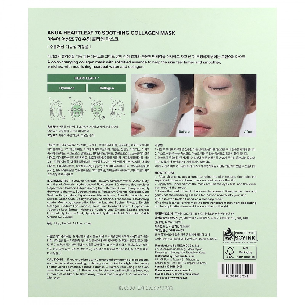 Коллагеновая маска, меняющая цвет, с отвержденной эссенцией, которая делает кожу более упругой и гладкой. Обогащена питательной водой из сердцевины и коллагеном.