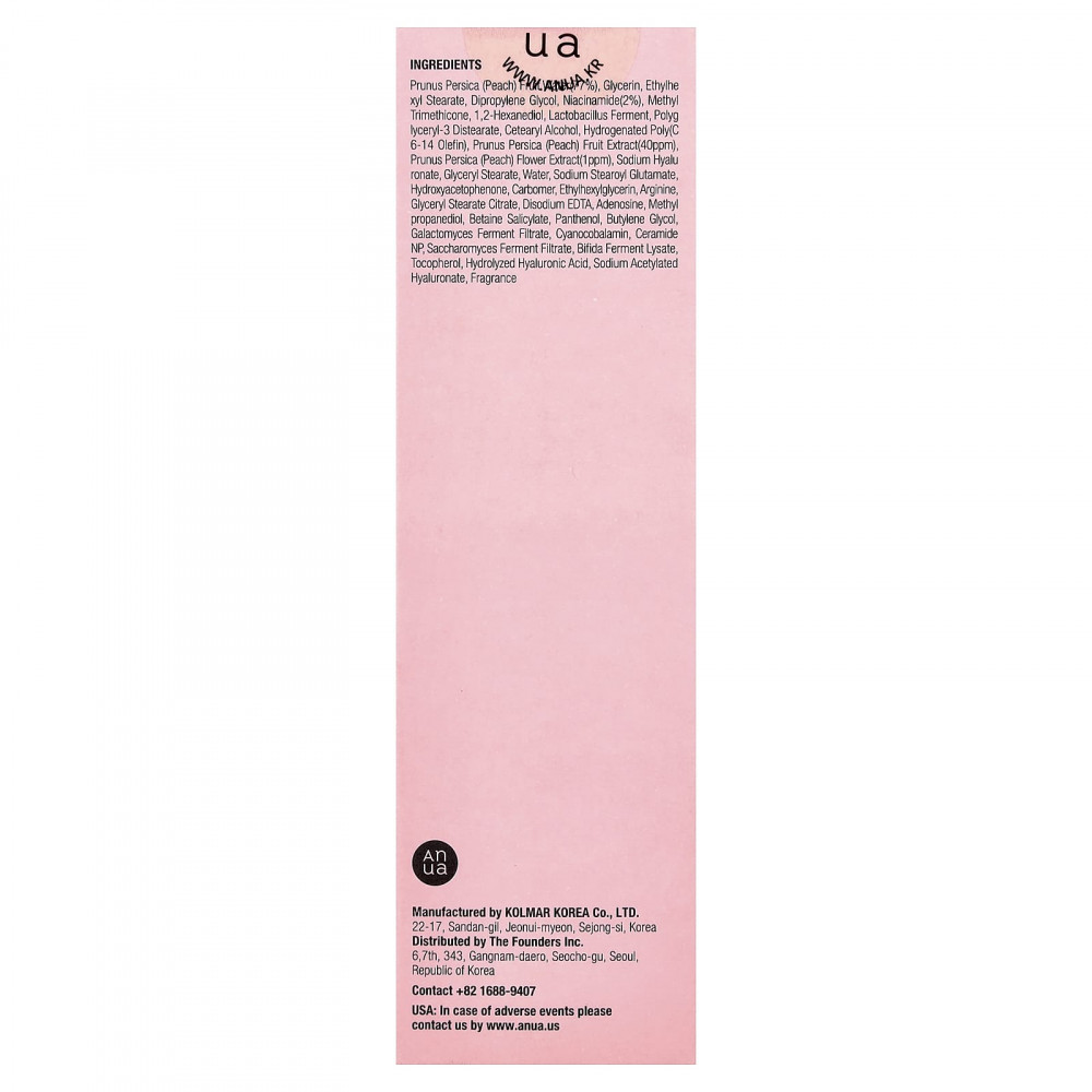 плоды персика (Prunus persica) (77%), глицерин, этилгексил стеарат, дипропиленгликоль, никотинамид (2%), метилтриметикон, 1,2-гександиол, Фермент лактобактерий, полиглицерил-3 дистеарат, Цетеариловый спирт, гидрогенизированный поли (c 6-14 олефин), экстракт плодов персика (Prunus persica) (40 част./млн), экстракт цветков персика (Prunus persica) (1 част./млн), гиалуронат натрия, глицерил стеарат, Вода, натрия стеароил глутамат, гидроксиацетофенон, Карбомер, этилгексилглицерин, аргинин, глицерил стеарат цитрат, Динатрия ЭДТА, аденозин, метилпропандиол, бетаин салицилат, пантенол, бутиленгликоль, ферментированный фильтрат галактомицетов (Galactomyces), цианокобаламин, Керамид NP, продукт ферментации дрожжевых грибков-сахаромицетов, лизат ферментов бифидобактерий, Токоферол, гидролизованная гиалуроновая кислота, ацетилированный гиалуронат натрия, аромат.