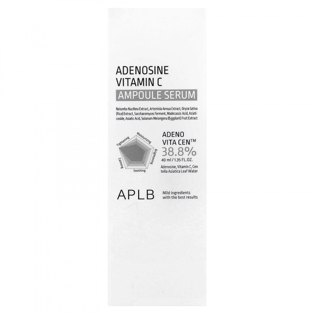 Эта ампульная сыворотка с 38,8% ADENO VITA CEN ™ (содержащая аденозин, витамин С и воду из листьев каламы) восстанавливает упругость и сияние стареющей кожи. Успокаивающие средства, например, экстракт чайного дерева.
