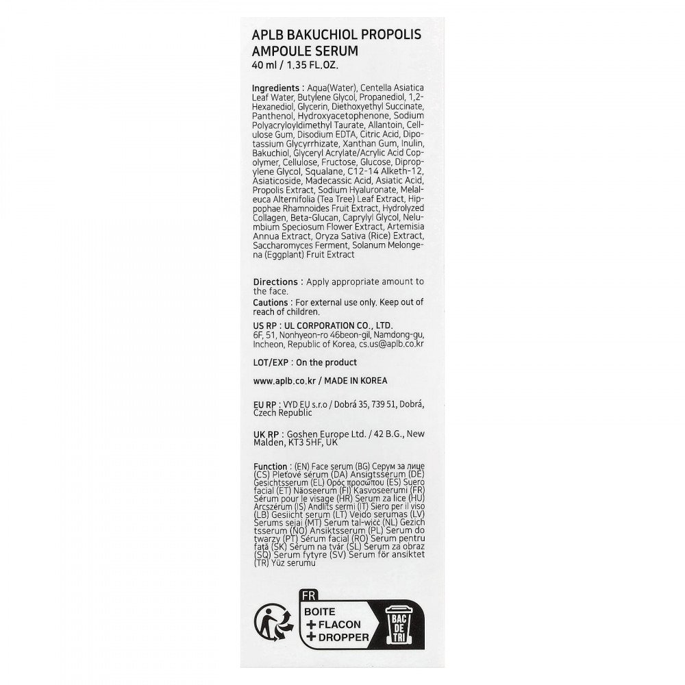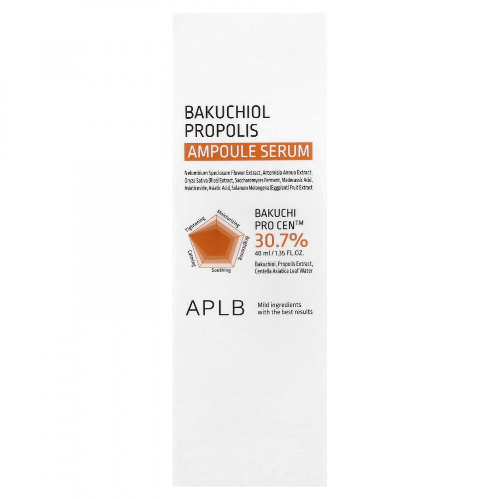 Ампула содержит бакучиол, экстракт прополиса и центеллу азиатскую, которые освежают сухую кожу.