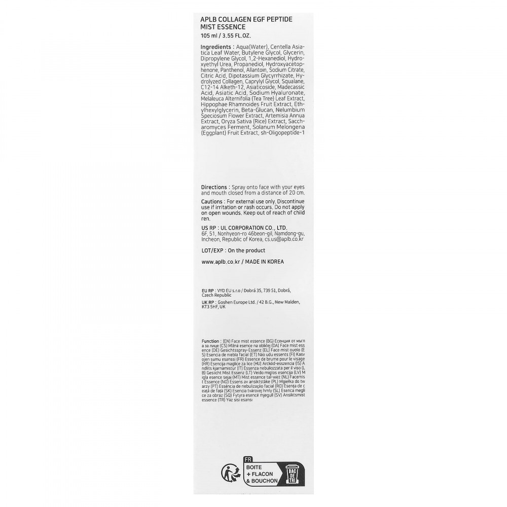 Вода, вода из листьев готу колы (Centella asiatica), бутиленгликоль, глицерин, дипропиленгликоль, 1,2-гександиол, гидроксиэтилированная мочевина, пропандиол, гидроксиацетофенон, пантенол, аллантоин, цитрат натрия, лимонная кислота, дикалия глицирризат, гидролизованный коллаген, каприлилгликоль, сквалан, c12-14 алкет-12, азиатикозид, мадекассовая кислота, азиатиковая кислота, гиалуронат натрия, экстракт листьев чайного дерева (Melaleuca alternifolia), экстракт плодов облепихи крушиновидной (Hippophae rhamnoides), этилгексилглицерин, бета-глюкан, экстракт цветков лотоса (Nelumbium speciosum), экстракт полыни однолетней (Artemisia annua), экстракт риса (Oryza sativa), продукт ферментации сахаромицетов, экстракт плодов баклажана (Solanum melongena), sh-олигопептид-1.
