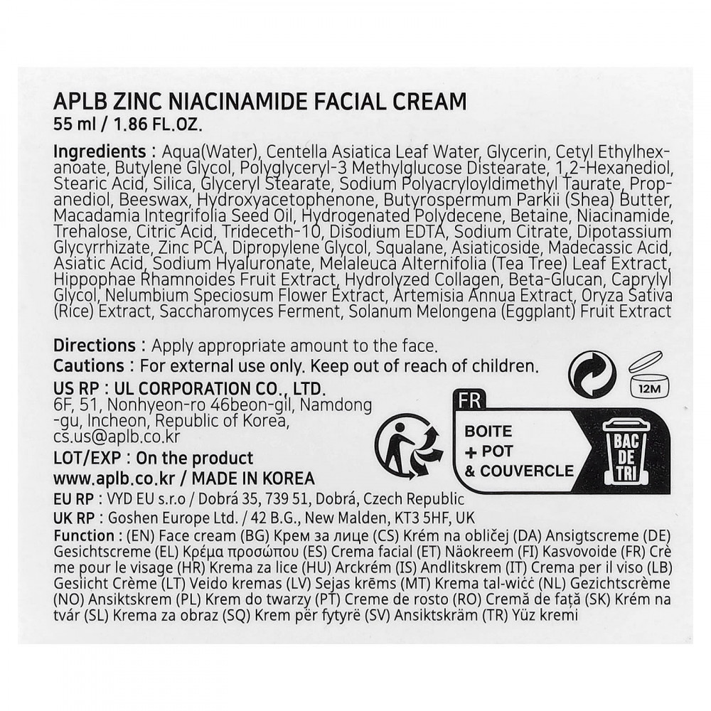Этот крем для лица, в состав которого входит 34,3% цинка (ZINC NIACIN CEN ™), никотинамид и цикальная вода, осветляет тусклую кожу и снимает раздражения.