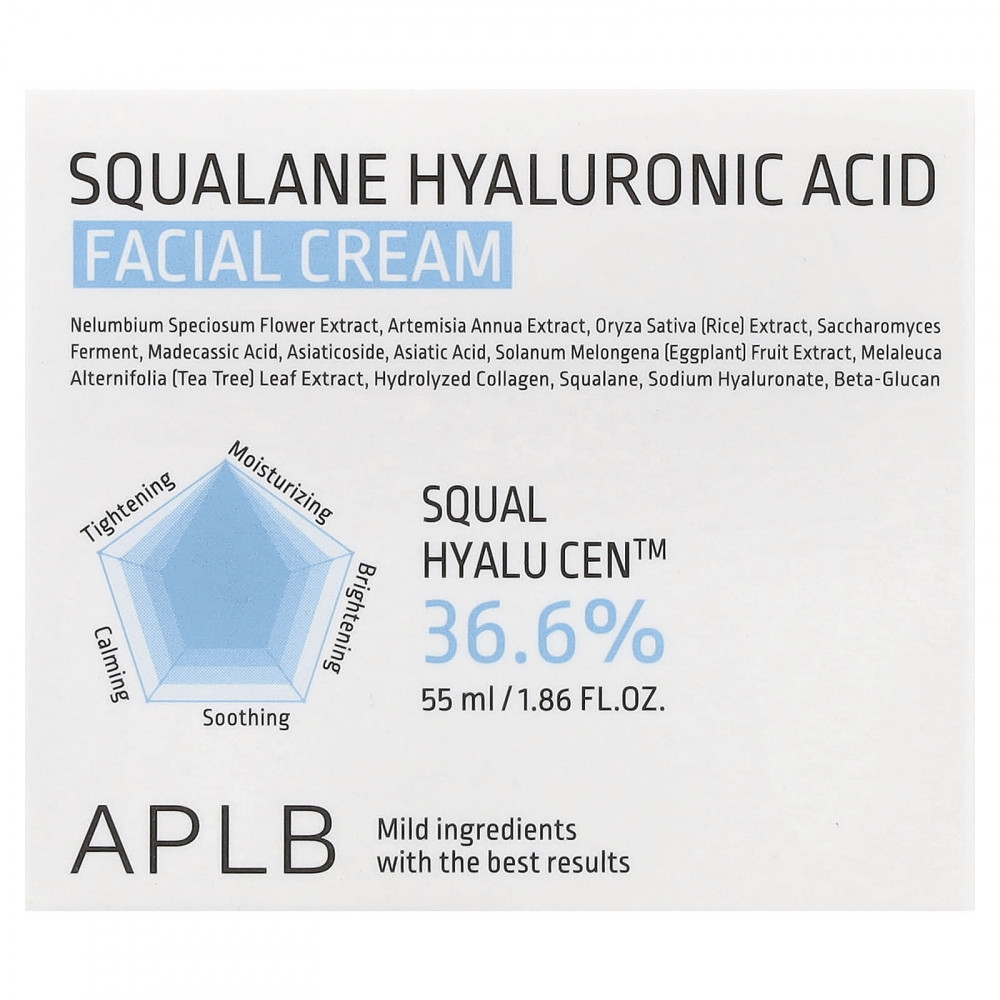 Этот успокаивающий крем для лица с 36,6% Squal Hyalu Cen ™ повышает эластичность и сияние кожи, придавая ей молодой вид.