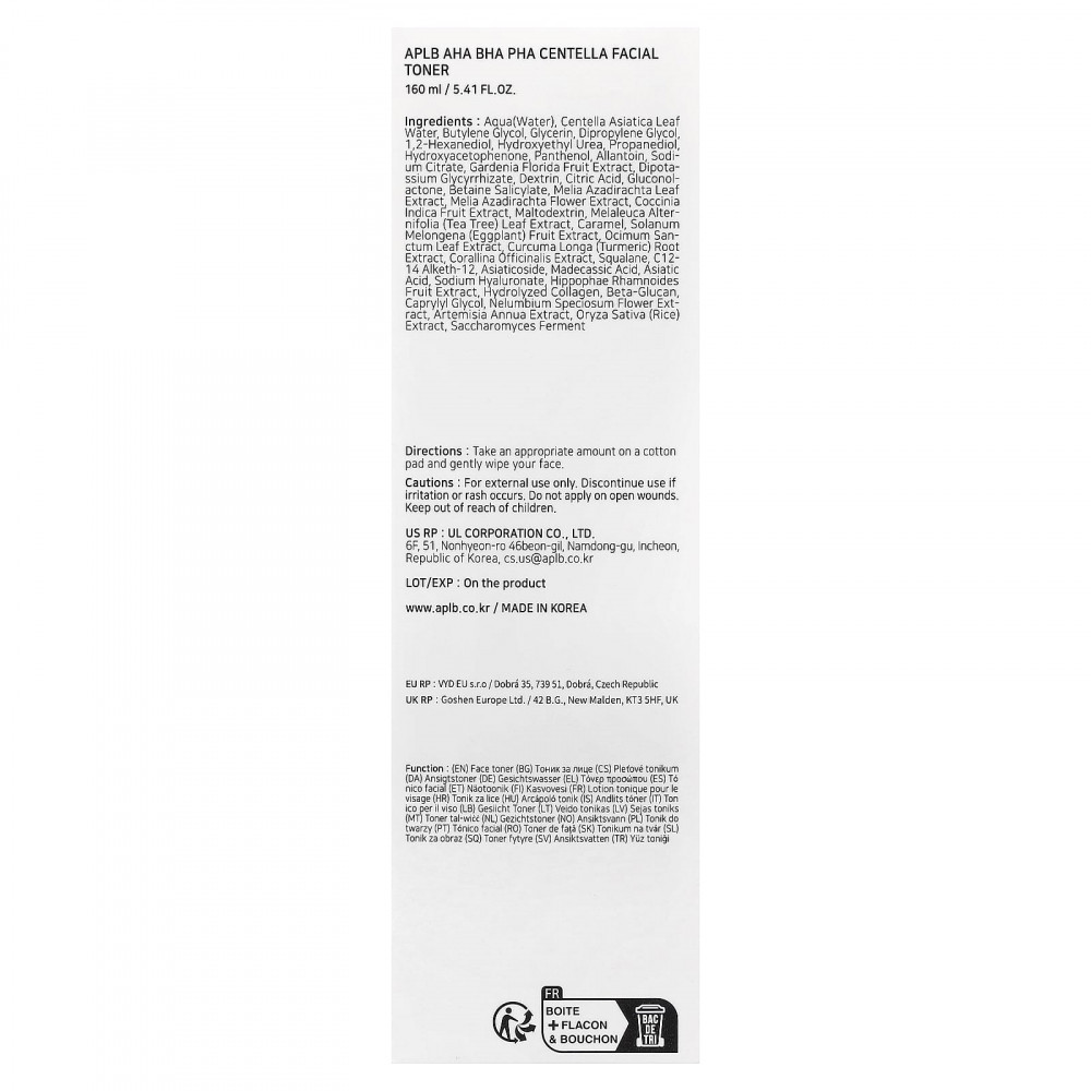 Вода, вода из листьев готу колы (Centella asiatica), бутиленгликоль, глицерин, дипропиленгликоль, 1,2-гександиол, гидроксиэтилированная мочевина, пропандиол, гидроксиацетофенон, пантенол, аллантоин, цитрат натрия, экстракт плодов гардении флоридской (Gardenia Florida), дикалия глицирризат, декстрин, лимонная кислота, глюконолактон, бетаин салицилат, экстракт листьев дерева ним (Melia azadirachta), экстракт цветков дерева ним (Melia azadirachta), экстракт плодов кокцинии индийской (Coccina indica), мальтодекстрин, экстракт листьев чайного дерева (Melaleuca alternifolia), карамель, экстракт плодов баклажана (Solanum melongena), экстракт листьев туласи (Ocimum sanctum), экстракт корня куркумы (Curcuma longa), экстракт кораллины лекарственной (Corallina officinalis), сквалан, c12- 14 алкет-12, азиатикозид, мадекассовая кислота, азиатиковая кислота, гиалуронат натрия, экстракт плодов облепихи крушиновидной (Hippophae rhamnoides), гидролизованный коллаген, бета-глюкан, каприлилгликоль, экстракт цветков лотоса (Nelumbium speciosum), экстракт полыни однолетней (Artemisia annua), экстракт риса (Oryza sativa), дрожжи.