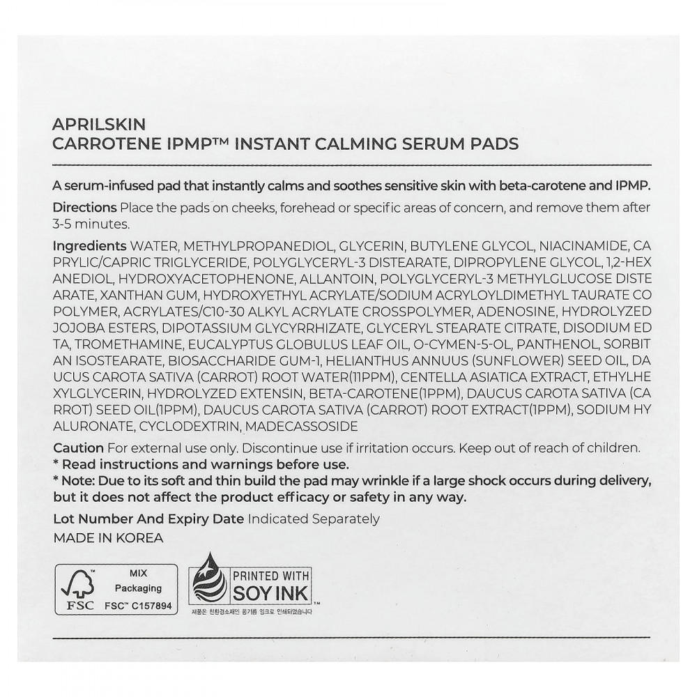 Диск с сывороткой, который мгновенно успокаивает чувствительную кожу с помощью бета-каротина и IPMP.