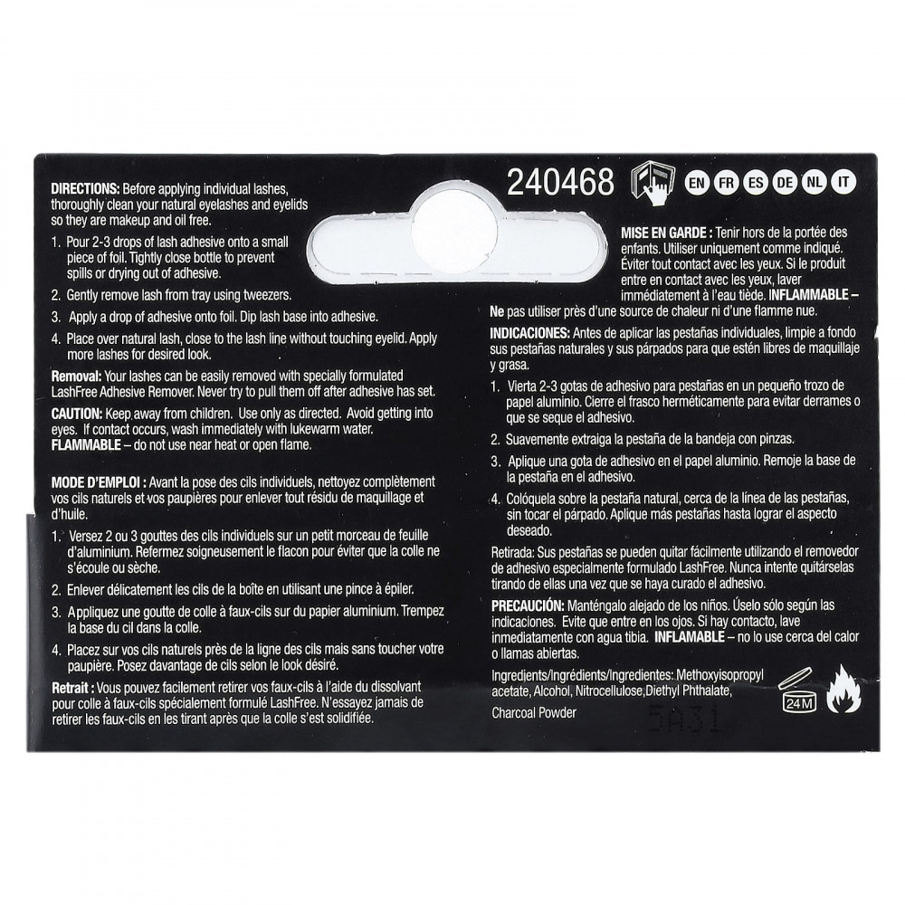 Удаление: Ресницы легко удаляются с помощью специально разработанного средства для снятия адгезива LashFree. Никогда не пытайтесь снять их после того, как клей затвердел.