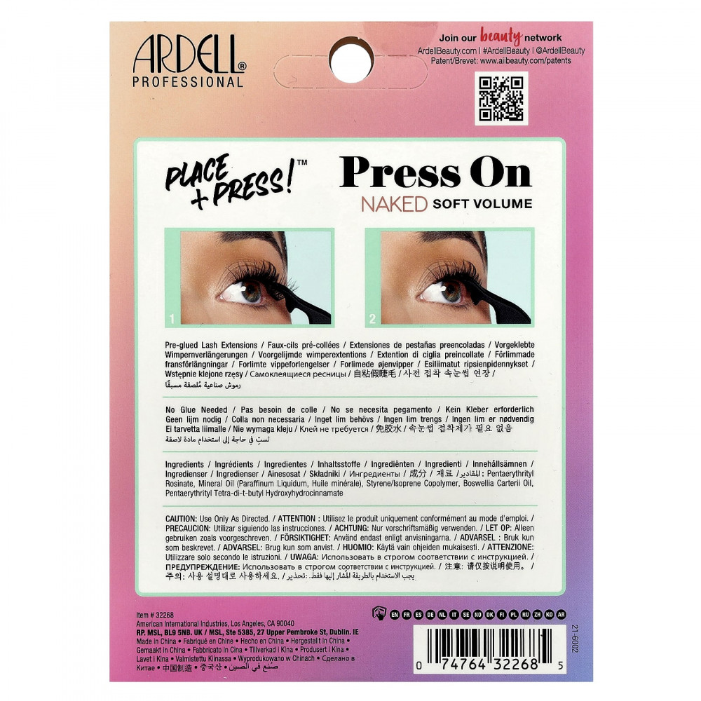 Нанесите нижний слой на поверхность менее чем за минуту с помощью предварительно наклеенных накладок Naked Press-on. Просто поместите и нажмите - нанесение выполняется быстро и без усилий. Держит в течение всего дня. Без клея, без остатков, без повреждений настоящих ресниц. Ничто не мешает вам и вашим голым ресницам. Наращивание ресниц скрывает их от глаз. В комплект входит эргономичный аппликатор «Розовый лебедь», который мгновенно соединяет пучки ресниц с настоящими ресницами. Укладка Soft Volume с мягким наслоением и легким перекрещиванием придает ресницам нежный размер. 30 кластеров 3 разной длины позволяют складывать, заполнять или акцентировать внимание, создавая эффектный индивидуальный дизайн.