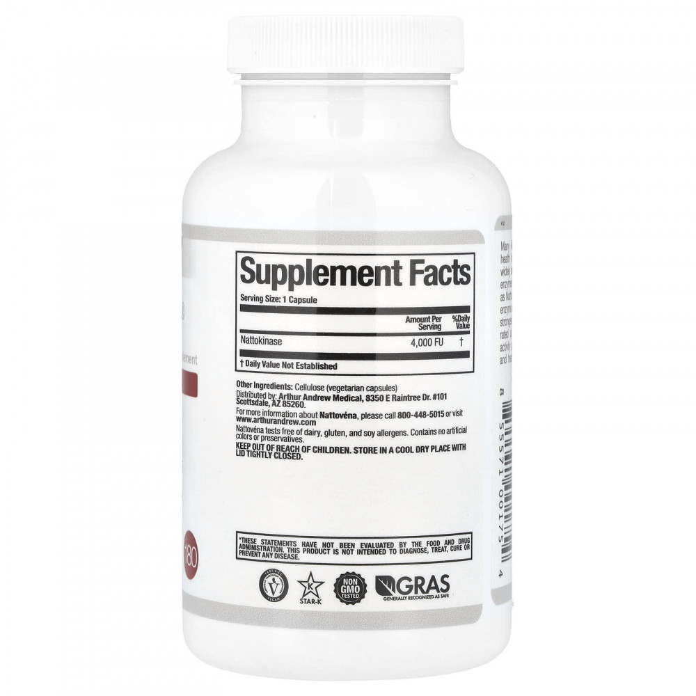 Представители многих азиатских культур демонстрируют более высокие показатели здоровья сердечно-сосудистой системы по сравнению со средними показателями взрослых людей в США, что часто объясняется рационом с повышенным содержанием натуральных пищевых ферментов. Японцы веками употребляли в пищу блюдо, известное как натто, которое содержит полезный для сердца фермент наттокиназу. NATTOVENA® — это один из самых мощных в мире продуктов с чистой наттокиназой на рынке, содержащий 4000 фибринолитических (растворяющих фибрин) единиц активности в 1 капсуле. NATTOVENA способствует нормальному кровообращению и здоровью сердца, поддерживая здоровый уровень фибрина. Фибрин — это белок, который начинает вырабатываться в избытке по мере старения организма и имеет важное значение для нашего здоровья и общего самочувствия. NATTOVENA — это мощный фермент, очищающий кровь, разработанный для поддержания здоровья сердечно-сосудистой системы.