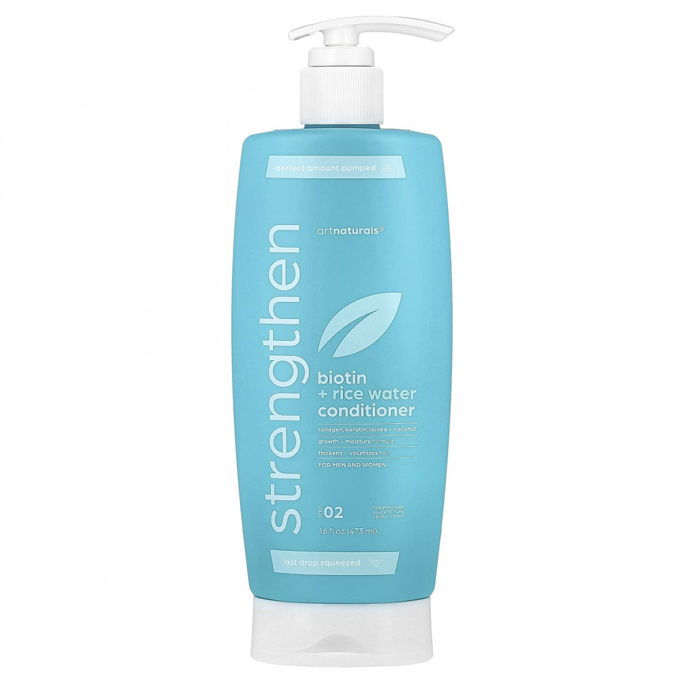 Результаты: кондиционер с биотином и рисовой водой artnaturals® увлажняет волосы, оживляя пряди и стимулируя рост волос, делая их более здоровыми, длинными и сильными.