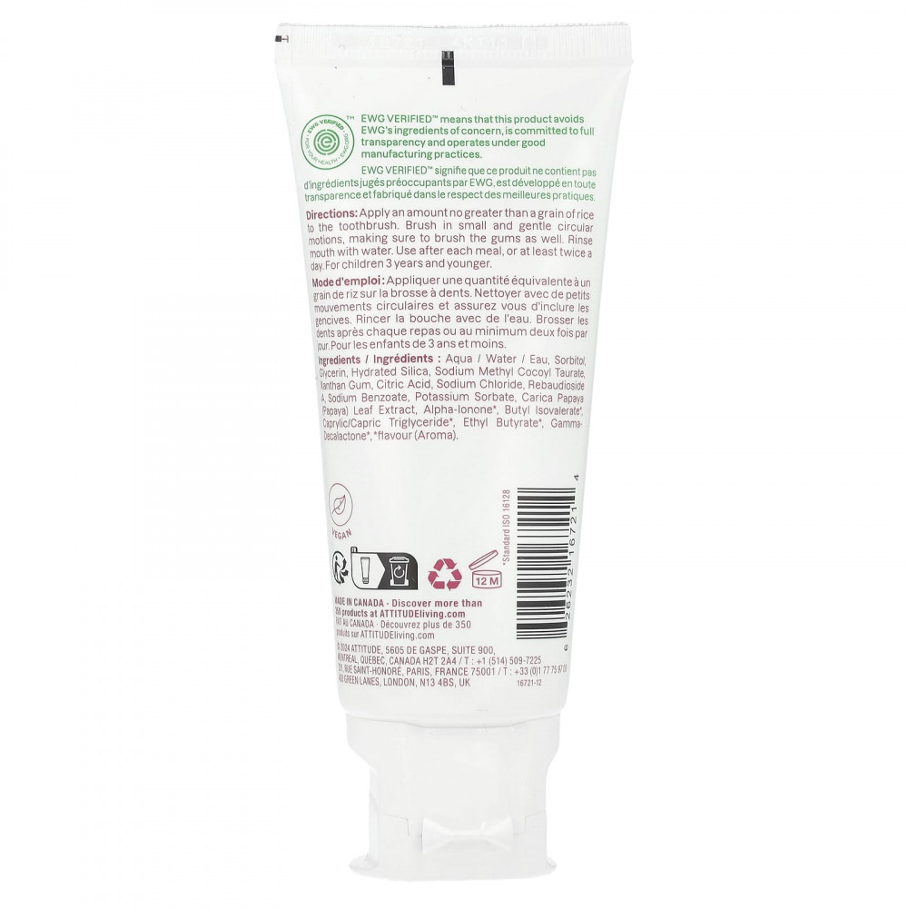 Его 100% веганский продукт, подтвержденный сертификатом EWG Verified®, содержит 98,8% ингредиентов природного происхождения *, включая экстракт листьев папайи для ощущения свежести. Благодаря гелевой текстуре и восхитительному клубничному вкусу он быстро станет неотъемлемой частью гигиены полости рта вашего ребенка.