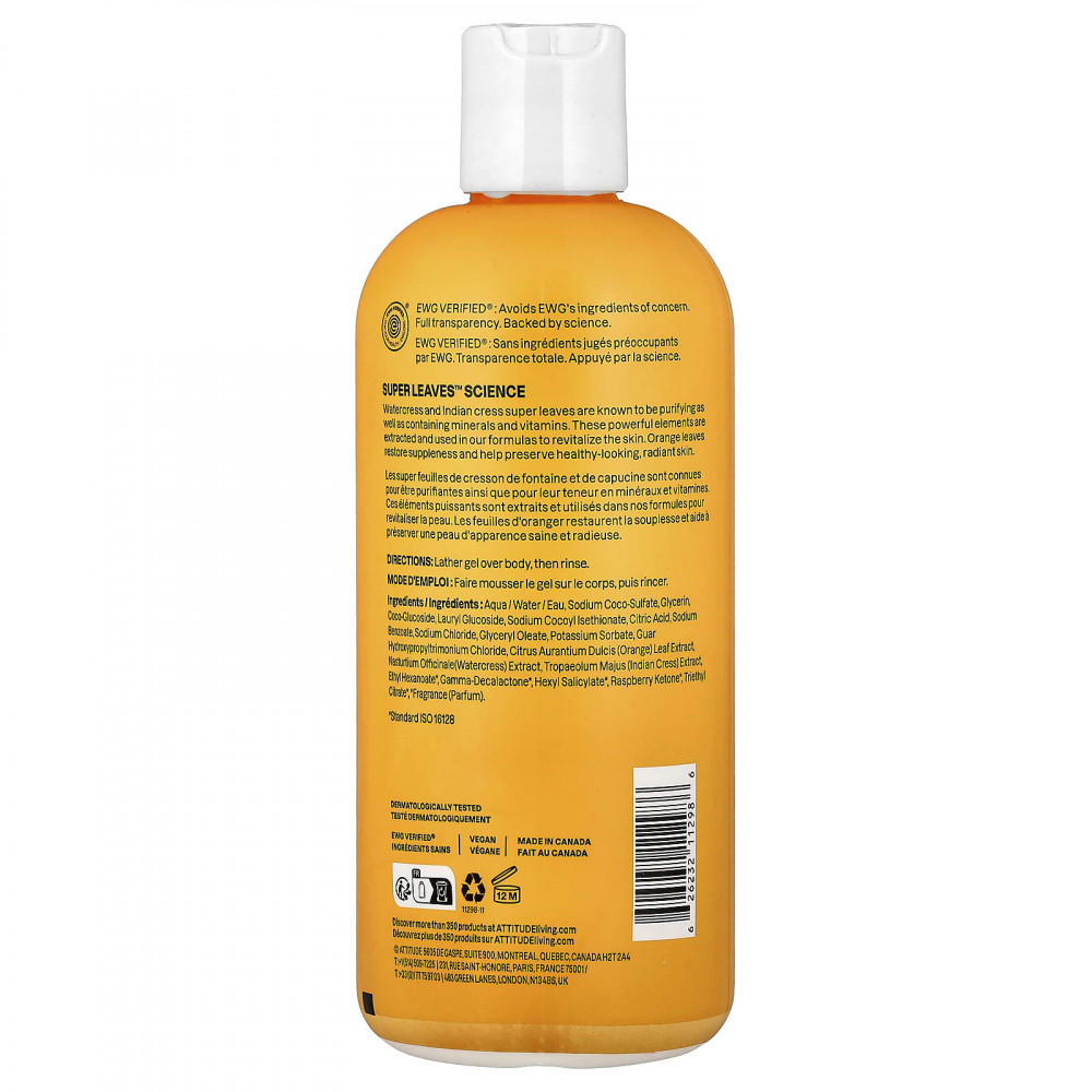 Вода/Aqua, кокосульфат натрия, глицерин, коко-глюкозид, лаурил глюкозид, натрия кокоилизотионат, лимонная кислота, бензоат натрия, хлорид натрия, глицерил олеат, сорбат калия, Гидроксипропилтримония хлорид гуара, экстракт листьев апельсина (Citrus aurantium dulcis), экстракт жерухи (Nasturtium officinale), экстракт кресс-салата (Tropaolummajus), этил гексаноат*, гамма-декалактон*, гексил салицилат*, малиновый кетон*, триэтилцитрат*.