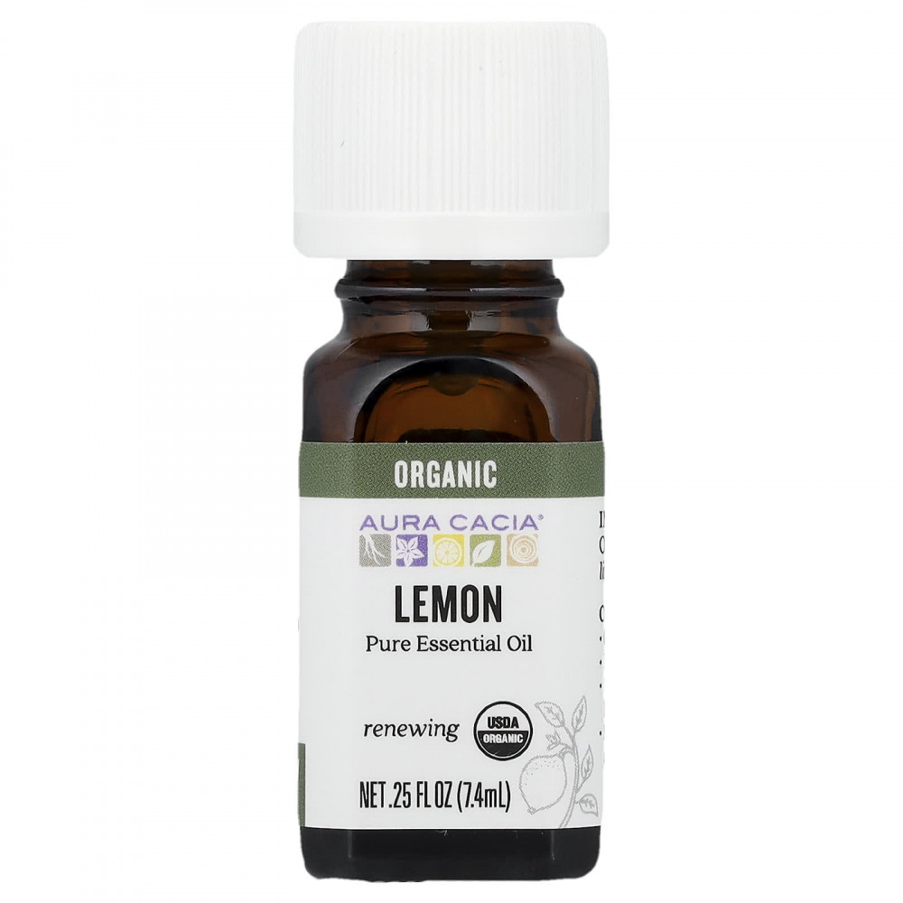 Aura Cacia, Чистое эфирное масло, органическое лимонное масло, 7,4 мл (0,25 жидк. унц.) в Москве - eco-herb.ru | фото