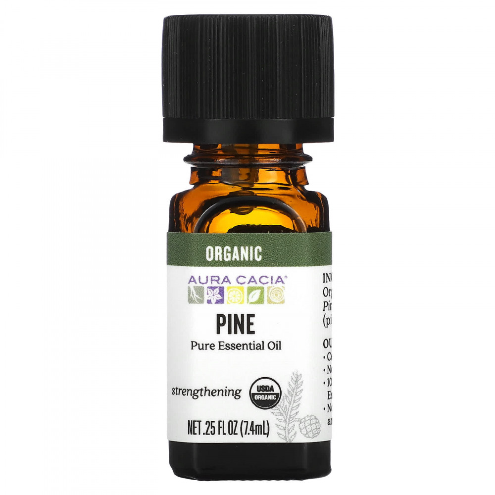 Aura Cacia, чистое эфирное масло, органическое сосновое масло, 7,4 мл (0,25 жидк. унции)