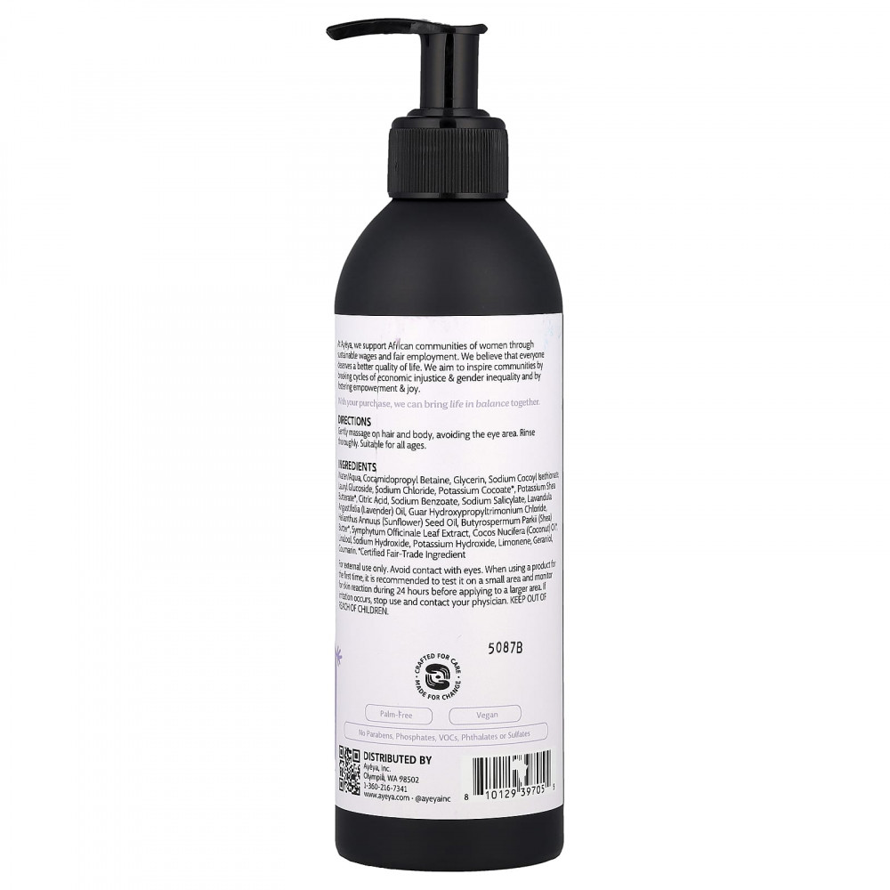 Вода (Aqua), кокамидопропилбетаин, глицерин, кокоил изетионат натрия, лаурил глюкозид, хлорид натрия, кокоат калия*, масляный крем ши*, лимонная кислота, бензоат натрия, салицилат натрия, лавандовое масло (Lavandula angustifolia), гуар гидроксипропилтримония хлорид, подсолнечное масло (Helianthus annuus), масло ши (Butyrospermum parkii)*, экстракт листьев горянки (Symphytum officinale), кокосовое масло (Cocos nucifera), линалоол, гидроксид натрия, гидроксид калия, лимонен, гераниола, кумарин.