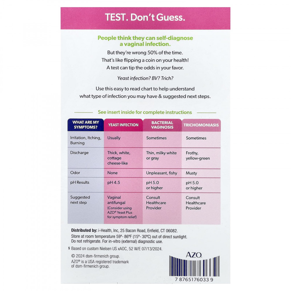 | Рекомендуемый следующий шаг | Вагинальное противогрибковое средство (рассмотрите возможность использования дрожжей AZO® Yeast Plus для облегчения симптомов) | Проконсультируйтесь с врачом | Проконсультируйтесь с врачом |
