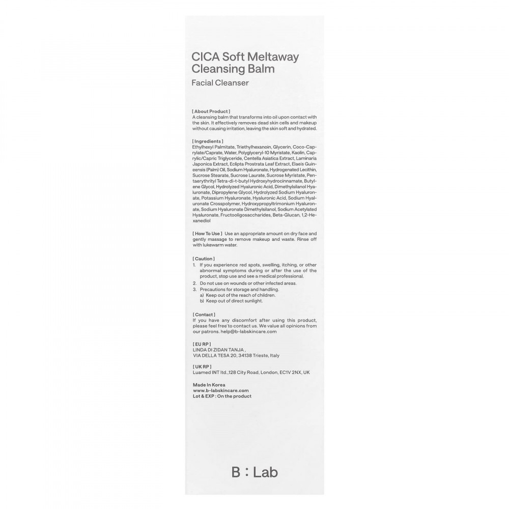 Этилгексил пальмитат, триэтилгексаноин, глицерин, коко-каприлат/капрат, вода, полиглицерил-10 миристат, каолин, каприловый/каприновый триглицерид, экстракт готу колы (Centella asiatica), экстракт ламинарии японской (Laminaria japonica), экстракт листьев эклипты простертой (Eclipta prostrata), пальмовое масло (Elaeis guineensis), гиалуронат натрия, гидрогенизированный лецитин, стеарат сахарозы, лаурат сахарозы, миристат сахарозы, пентаэритритил тетра-ди-трет-бутил гидроксигидроциннамат, бутиленгликоль, гидролизованная гиалуроновая кислота, диметилсиланола гиалуронат, дипропиленгликоль, гидролизованный гиалуронат натрия, гиалуронат калия, гиалуроновая кислота, кроссполимер гиалуроната натрия, гиалуронат гидроксипропилтримония, гиалуронат натрия диметилсиланол, ацетилированный гиалуронат натрия, фруктоолигосахариды, бета-глюкан, 1,2-гександиол.