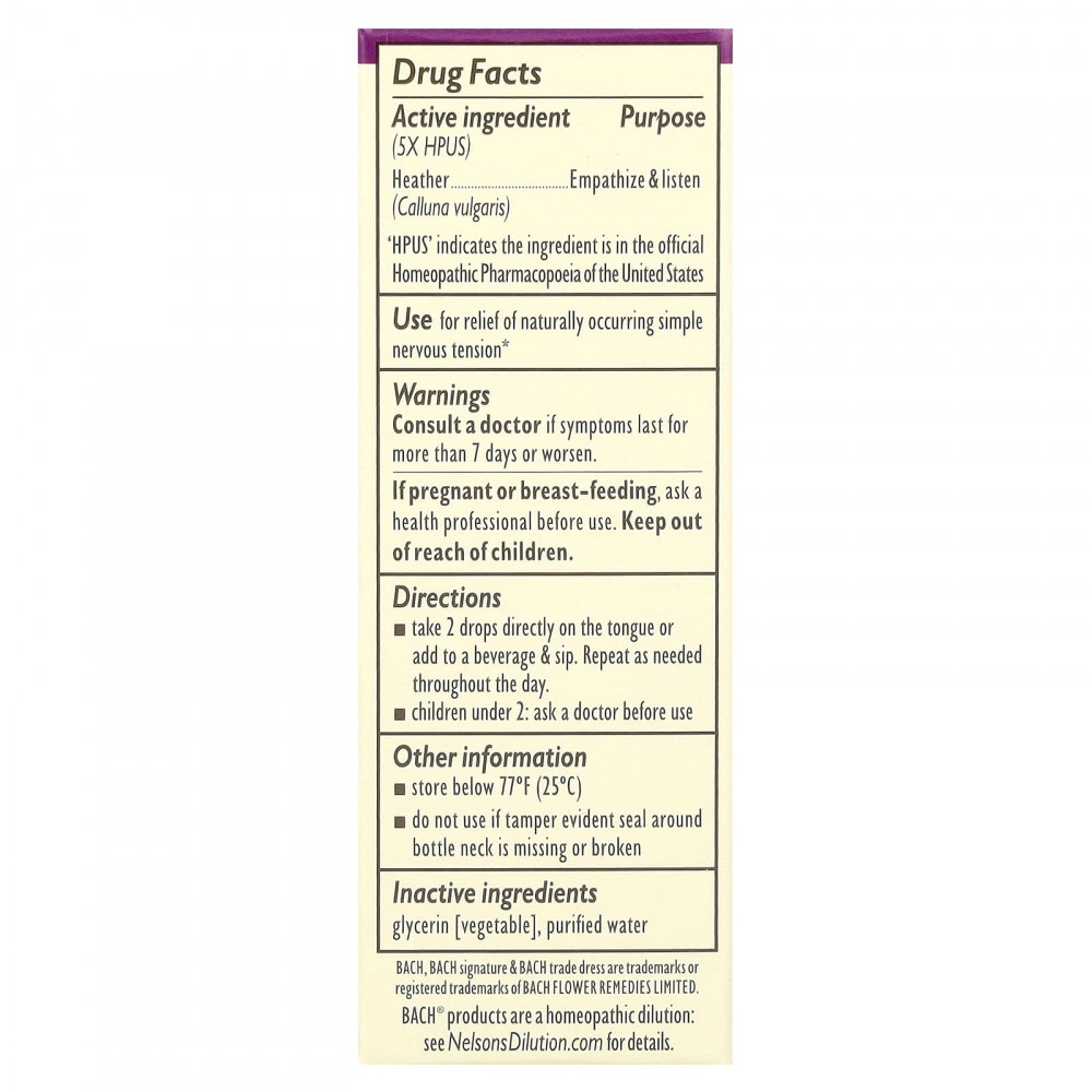Bach, Original Flower Remedies, вербена, 10 мл (0,35 жидк. унции) - описание